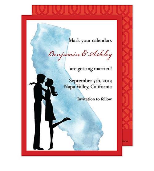 Save the Date with this 5 x 7 California inspired invitation. Includes white envelopes.