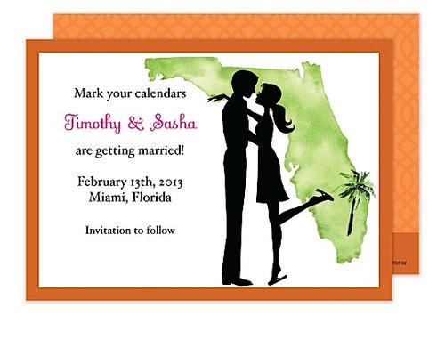 Save the Date with this 5 x 7 Florida inspired invitation. Includes white envelopes.